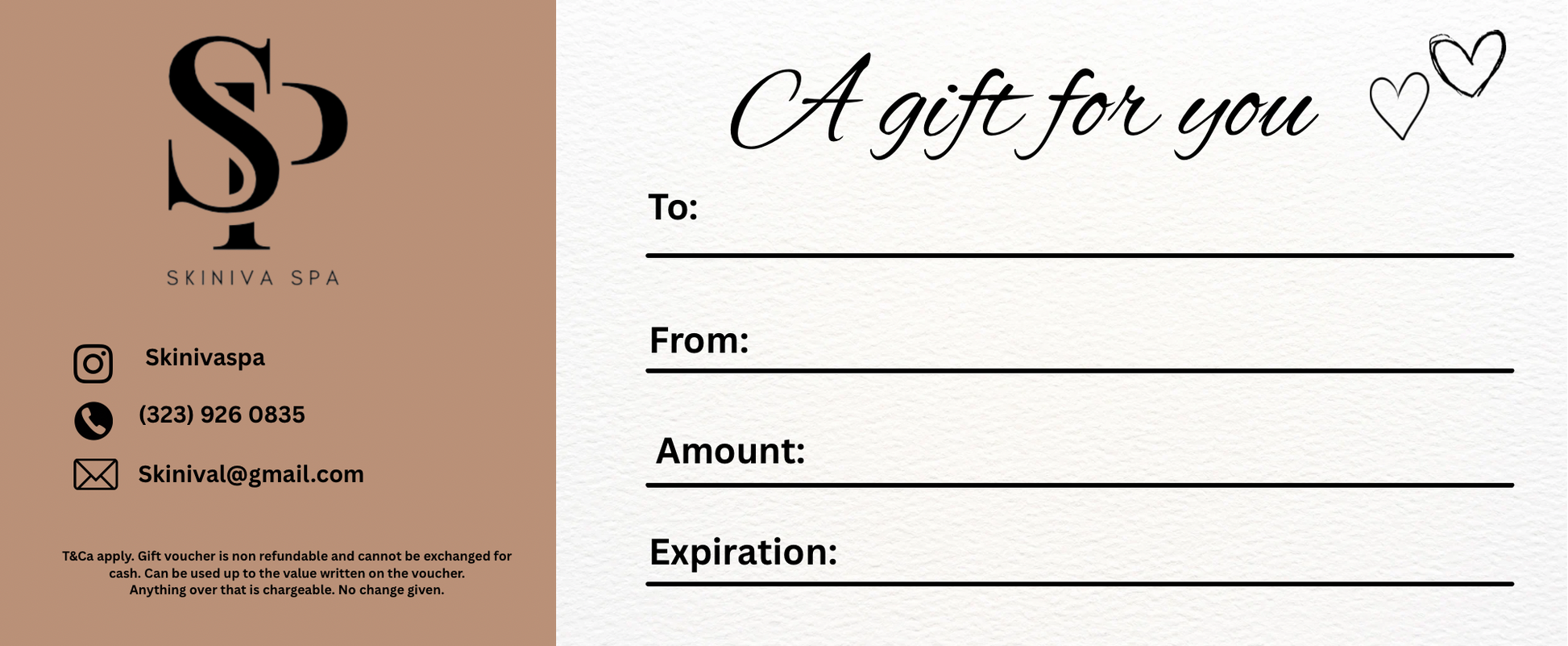 Skiniva Spa digital gift cards can be used toward any facial treatment or skincare purchase. Delivered instantly via email with a unique redeemable code.