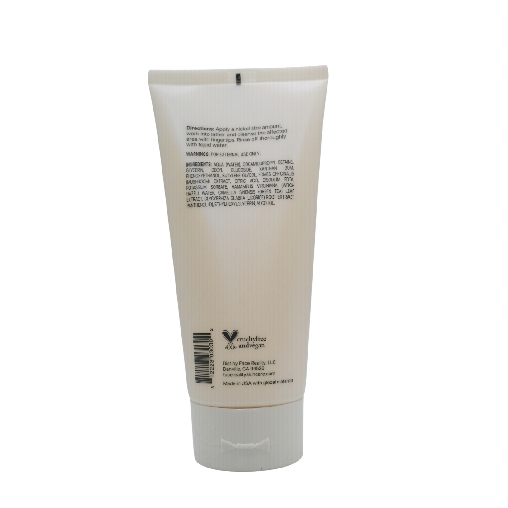 Aqua (Water), Cocamidopropyl Betaine, Glycerin, Decyl Glucoside, Lauryl Glucoside, Xanthan Gum, Glycyrrhiza Glabra (Licorice) Root Extract, Fomes Officinalis (Mushroom) Extract, Camellia Oleifera (Green Tea) Leaf Extract, Panthenol (D), Disodium EDTA, Hamamelis Virginiana (Witch Hazel) Water, Citric Acid, Alcohol, Butylene Glycol, Potassium Sorbate, Phenoxyethanol, Ethylhexylglycerin